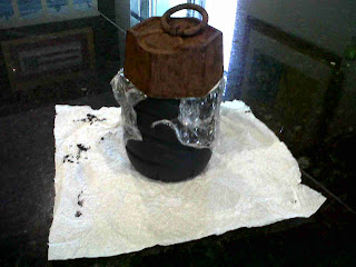 4- Colocar o peso no centro do plástico, de modo a ficar curvado.